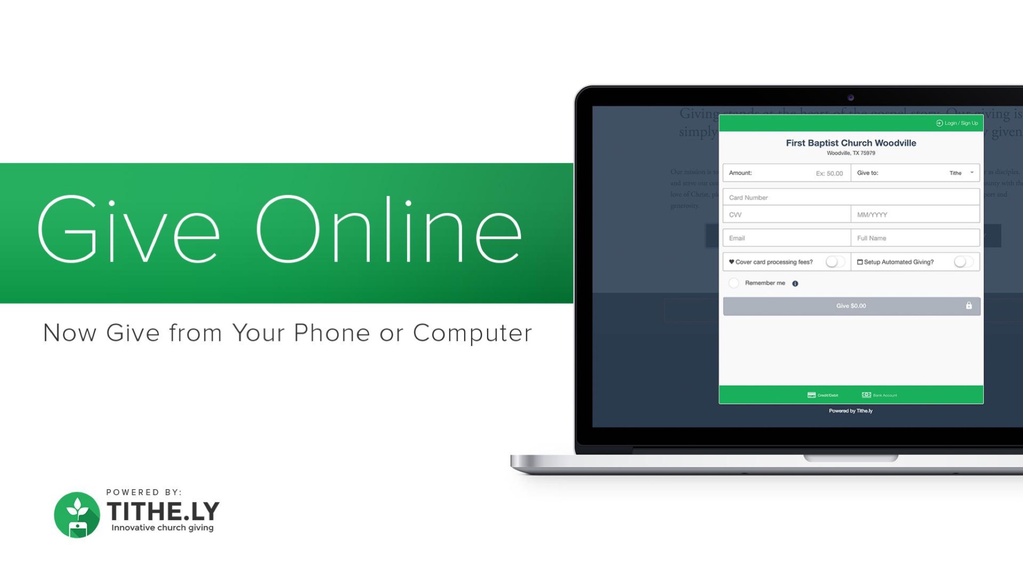 In 2 Corinthians 8 & 9, the Apostle Paul writes to the church in Corinth and encourages them to give generously, to give cheerfully, and to give regularly.  We are so thankful for many in the church that give regularly, cheerfully and generously.  As more and more people are doing their banking online, we have sought to provide an option for giving to the church online.  Simply click on the picture below and give to Faith BFC.